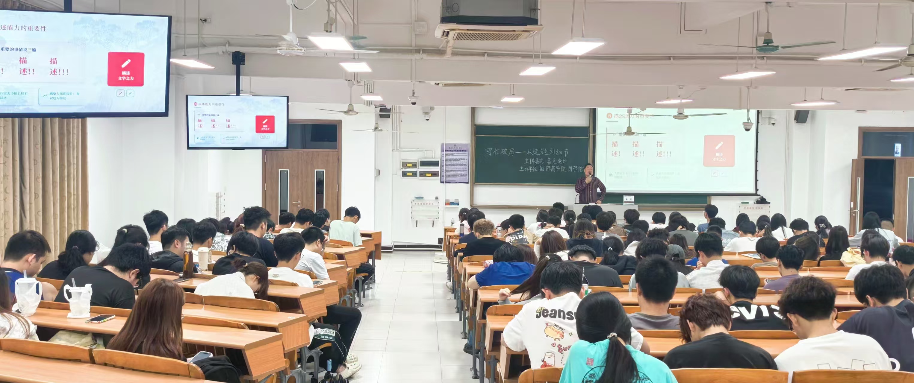 讲座伊始,鲁克以轻松互动开篇,与学生交流写作经历,鼓励大家打破“写作是文科生专属”的固有认知,鲁克结合自身创作经历,分享写作提升核心方法,他表示,掌握正确技巧,普通学生也能逐步突破写作瓶颈。