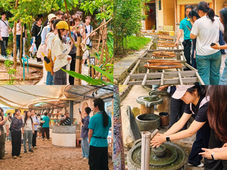 随后,师生走进芳香遗址博物园,在讲解员的带领下参观古制香作坊、晒香场、石磨坊、芳香碓房等历史遗迹,详细了解中华芳香文化的发展脉络与非遗制香技艺的传承历程,感受传统文化的深厚底蕴与独特魅力。