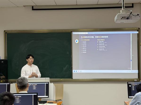 专题分享环节,柯楠以具体微单元为范例,系统拆解AI+课程打造思路与实施路径,结合典型案例深度剖析建设要点,并现场指导与会教师开展实操仿制,帮助大家熟悉课程设计全流程。针对教师们的课程案例,柯楠逐一打磨优化,细致梳理问题、精准答疑解惑,确保课程建设方向清晰。分享中,柯楠强调“教师是教学的设计者,学生是问题的求解者”的教学理念,提醒教师聚焦教学设计核心,引导学生主动理解问题、解决问题。他还结合工科专业特性,聚焦工科工程问题六大任务领域(状态感知、运行判断、故障诊断、健康评估、优化调度、控制策略),并系统阐释基于PACE四步法(问题 Problem-共识 Agreement -建设 Construction -评估 Evaluation)构建教学案例的方法,以及学生问题理解能力递进三层次:L1能完成简单代码补充、保障案例运行;L2可调整参数优化结果;L3能实现案例迁移应用,为AI+课程教学实施提供了科学、可落地的实操框架。