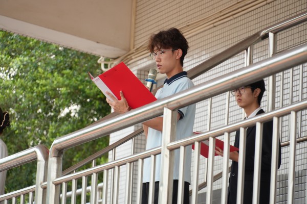 学生代表作国旗下演讲(梁誉楷 摄)