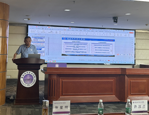 随后,教务处副处长许淑贞围绕实习政策解读、专项整治推进、数据填报规范、下一步工作部署四个方面作专题汇报。许淑贞带领大家认真学习了教育部实习管理相关文件,指出我校已构建完善的实习管理制度体系,涵盖实习教学管理、安全管理、质量标准、实践教学基地标准等多项制度,为实习工作规范开展提供坚实制度保障。针对实习专项整治工作,许淑贞明确整治应以促提升、建机制、长效化为导向,要求各学院建立问题、责任、整改三张清单,真查真改、务求实效,切实保障学生合法权益。在数据填报方面,她通报了全国大学生实习公共管理服务平台数据填报情况,强调实习数据是教育部评估核查、学校管理决策的核心依据,与基本状态数据库相关内容形成全链条数字化监管体系。要求各学院高度重视数据填报工作,为实习工作精准施策、提质增效筑牢坚实的数据根基,全面推动我校实践育人体系数字化、规范化、科学化水平持续提升。