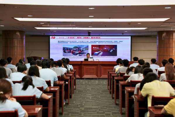 本网讯(记者 涂昌鹏)4月14日下午,校长苏成以“把握时代机遇 青年大有可为”为主题,在行政楼617室为机械工程学院/机器人工程学院、计算机工程学院/大数据学院和经济学院学生骨干授课。他从国家“十五五”规划《纲要》切入,结合学校发展实际,为青年学子描绘了学校未来五年的奋斗图景。