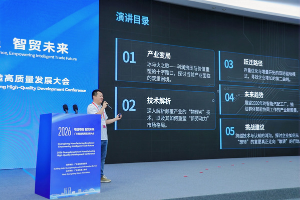针对产业转型痛点,他围绕成本投入、人才培养、数据安全等提出务实解决方案,并展望2030年智能工厂群体智能协同、工艺自主优化、全生命周期碳足迹追踪等发展趋势。