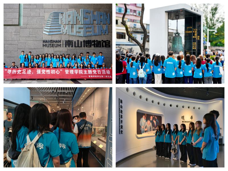 本网讯(记者 杨泺祺 吴昊窈 蔡锭宇)为深化青年学生思想引领,厚植家国情怀,切实增强青年学子历史使命感,4月19日,管理学院组织学生第二党支部党员、入党积极分子等师生共计43人前往深圳南山博物馆、中英街博物馆,开展“寻历史足迹,强党性初心”主题党日活动,让青年学生在实地走访中感悟历史底蕴,在沉浸式学习中筑牢初心使命。