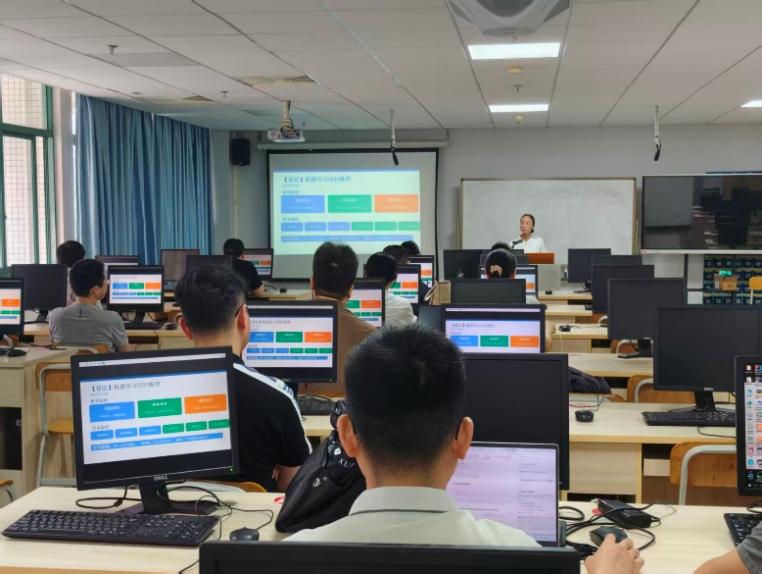 培训紧扣一线教学痛点,重点突出了“技术降维”与“实操落地”的理念。韦金汝以土木工程真实案例为线索,从数据选取、预处理、特征工程构建到模型训练与性能评估,进行了全流程的理论讲解,并在Jupyter平台上进行了代码演示与分步带练。参训教师同步开展了AI融入案例的实践操作,亲身体验了从数据导入、模型训练到结果生成的全过程,在实践中深化对AI教学应用的理解。针对教师在操作中遇到的理论、技术与教学设计等方面的困惑,韦金汝积极提供“陪伴式”指导与即时答疑,现场研讨氛围浓厚,气氛热烈。这种“做中学、学中做”的模式,有效降低了AI技术应用门槛,让参训教师直观感受到AI技术在减轻教学负担、提升教学效率方面的显著优势。参训教师表示收获颇丰,未来将积极把教学技能运用到课堂中,推动教学模式创新。