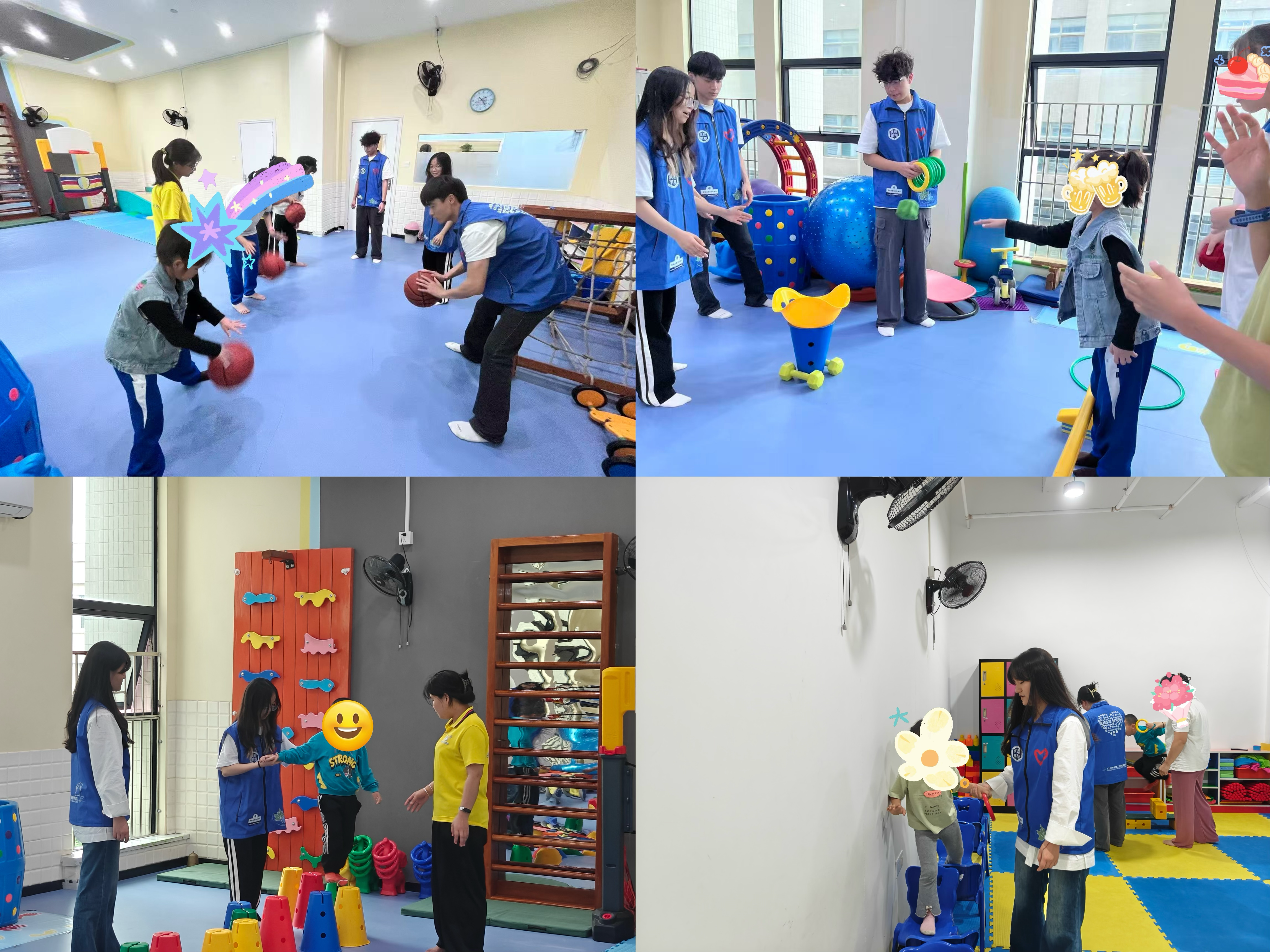 随后,志愿者们结合自身专业特长与兴趣,积极投身各类志愿服务工作。大家走进课堂,陪伴孩子们参与桌面教学、感统体能训练、音乐律动、社交游戏等特色课程,耐心引导孩子们参与互动练习,助力其提升身体协调能力与社交沟通能力,在欢声笑语中,拉近与孩子们的心灵距离。在陪伴之余,志愿者们主动协助机构完成教室清扫、教具清洗、生活用品整理等后勤工作,为孩子们打造了干净整洁、温馨舒适的学习生活环境。