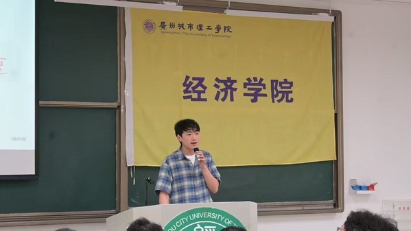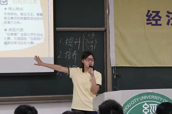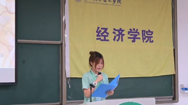 随后,经济学院团委学生会学术部部长赵畅结合学院学科特色,向大家介绍了适合经济类学生参与的各级各类赛事。她指出,赛事与经济类专业高度契合、含金量与认可度双高,学院学子曾多次在各级赛事中斩获国奖、省奖。并鼓励同学们不畏零基础,以敏锐的洞察力、时刻保持怀疑的修正态度、多元的思维能力和高效的执行力勇敢迈出第一步,在赛场上收获成长与荣誉。