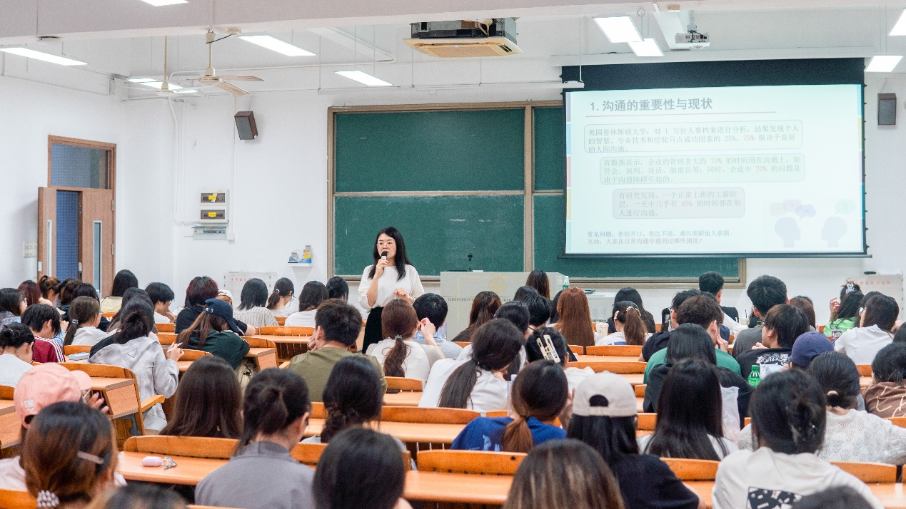 To deepen readers’ understanding and practical skills of effective communications, GCUT’s library and International Business School held a lecture themed on “effective communications empower one’s growth” in the Room 203 of the Teaching Building A5 on the evening of June 17, which was delivered by Hu Jingshan, deputy director of the Student Affairs Office of GCUT’s International Business School. Participants included Guo Peihong, GCUT’s Library Director, faculty of the Student Affairs Office of GCUT’s International Business School, and around 150 readers, who explored the values and arts of communication together.