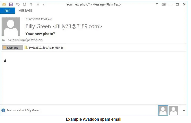 在一波以“你的新照片?”或“你喜欢我的照片吗?”为主题的电子邮件中,除了一个眨眼的笑脸外,什么内容都没有,一个用于Avaddon勒索软件的JavaScript下载程序正在被传播。