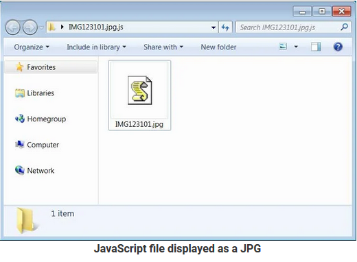 这些电子邮件的附件是一个JavaScript文件,伪装成一张名为IMG123101.jpg的JPG照片。在你问为什么有人会打开通过电子邮件发送给他们的JavaScript文件之前,重要的是要记住,Windows默认会隐藏文件扩展名,尽管这是一个已知的安全风险。这意味着对接收者来说,它将以.jpg文件的形式出现,如下所示。JavaScript文件显示为JPG格式
