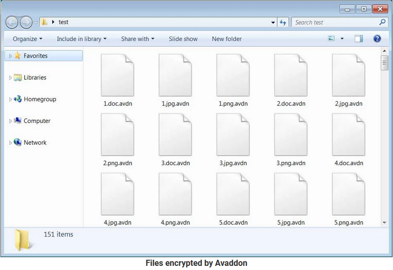 一旦执行,勒索软件将搜索数据进行加密,并将.avdn扩展名附加到加密的文件中。