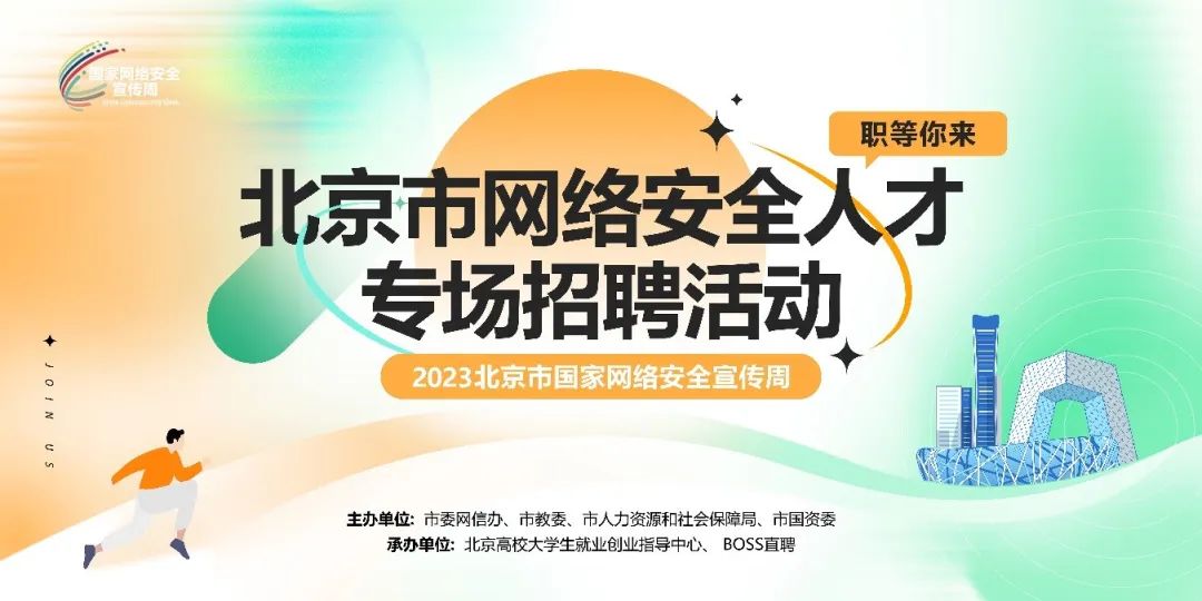 按照《2023年国家网络安全宣传周北京市总体实施方案》统一部署,为进一步促进北京市网络安全人才充分就业,搭建企业和人才精准对接交流平台,市委网信办联合市教委、市人力资源和社会保障局、市国资委等部门共同在9月举办网络安全人才专场招聘活动。